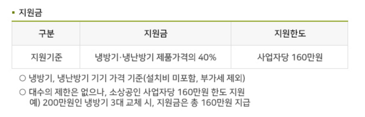 - 목적 : 고효율 냉난방기를 교체 지원함으로써 소상공인의 에너지 소비를 효율화한다는 것입니다.